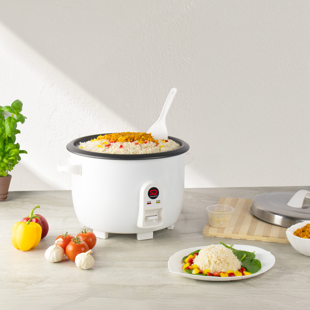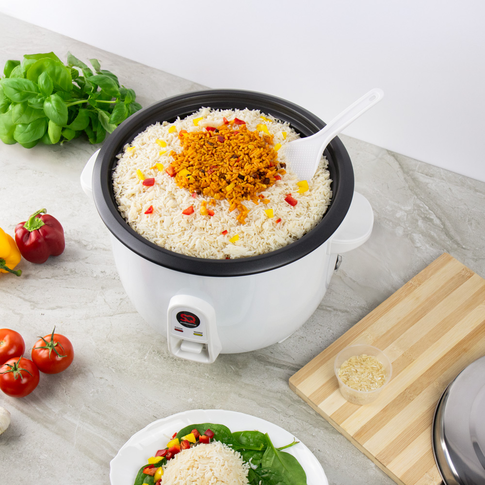 Never again will you suffer with dry burnt rice, undercooked grains or soggy slop! A large SQ Professional rice cooker will have you cooking rice to perfection, no matter how much, every time! The easy to use design makes these rice cookers a fantastic addition to any large kitchen. Prepare enough to feed everyone in this extensive range of larger sizes. A removable non-stick interior bowl offers incredible non-stick performance, preventing stuck on burnt rice. Not only does this give you perfectly cooked rice but reduces time spent washing up! Once your rice is cooked, the handy ‘keep warm’ function ensures your food is kept warm until it’s ready to be served, for up to 12 hours. Designed with you in mind, the convenient indicator lights allow you to see when your rice is cooking or when it is just being kept warm. Eliminate over measured portions and food waste from now on as each SQ Professional rice cooker comes with a measuring cup and rice scoop.