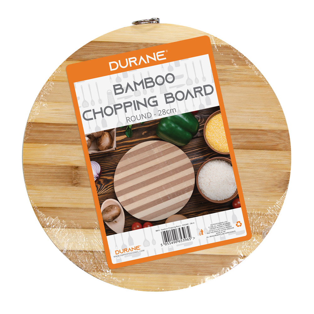 The 28 cm round form provides a pleasing, compact surface for everyday tasks, adding a natural, practical touch to the kitchen.