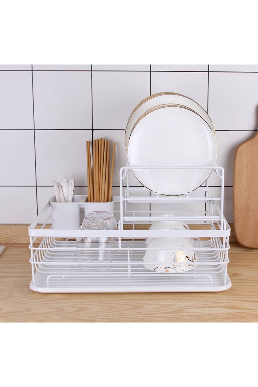 Living and Home Kitchen 2-Tier Metal Dish Drainer Rack Detachable Storage Drip Tray Sink Washing Plates Draining Board