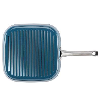 Enjoy indoor grilling with the Ayesha Curry Home Collection square grill pan. This nonstick porcelain enamel stovetop grill is made from durable aluminum for quick, even heating. The stylish exterior features an eye catching color to complement your kitchen. Long-lasting nonstick for effortless food release, the grill pan’s raised edges are easier than ever to clean. Oven safe to 500°F to suit a wide range of recipes.