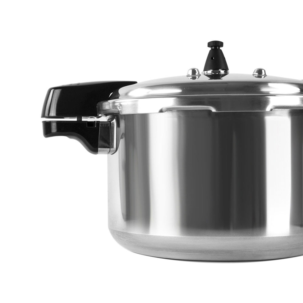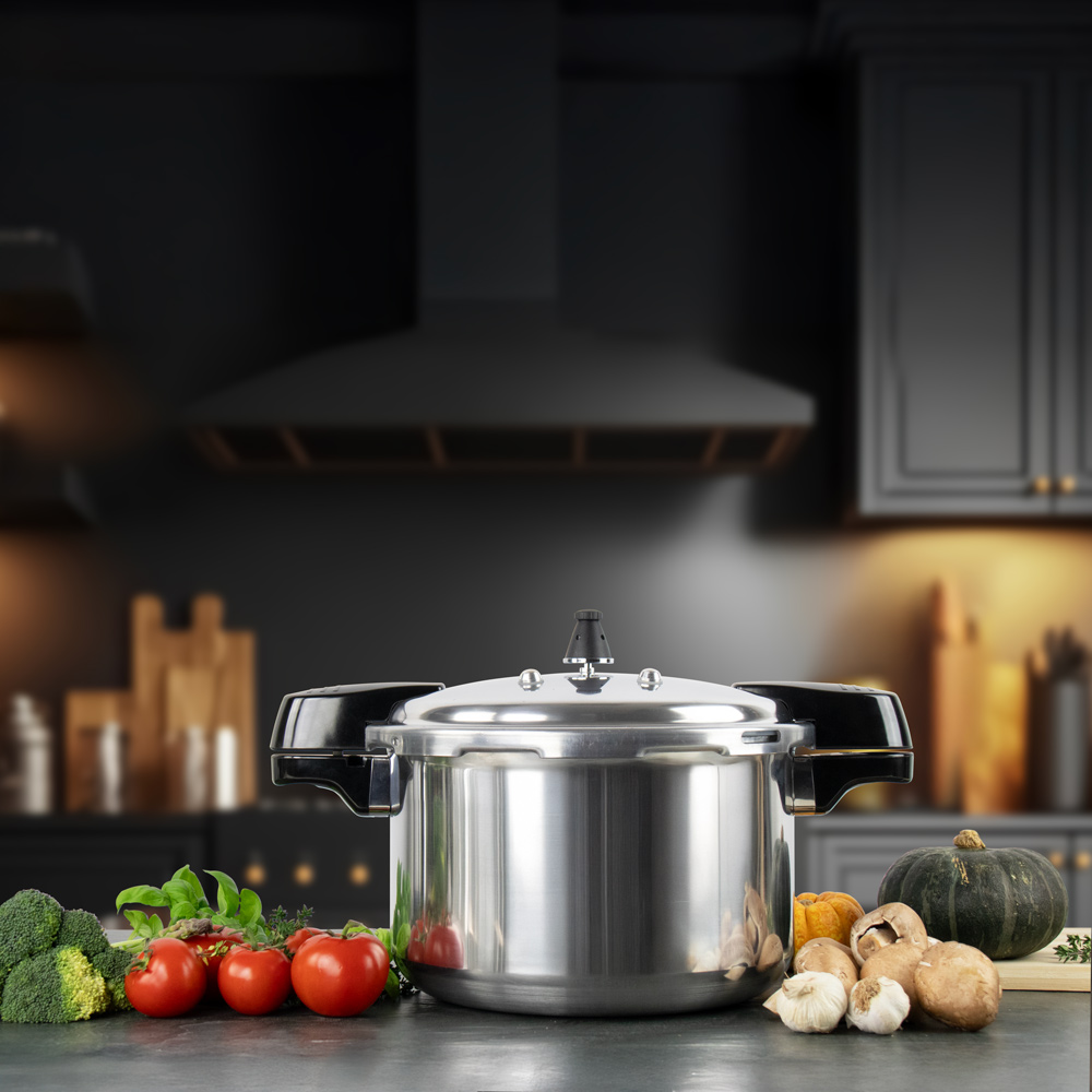 Speed up your cooking with the SQ Professional aluminium pressure cooker, designed to lock in flavour and nutrients while significantly reducing cooking times. Made from high-quality aluminium, it offers both durability and a sleek appearance that fits seamlessly into any kitchen. The secure locking mechanism and pressure indicator ensure safe and easy operation, giving you confidence every time you cook.