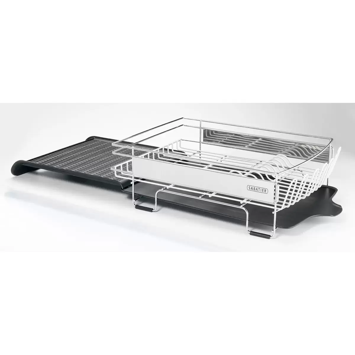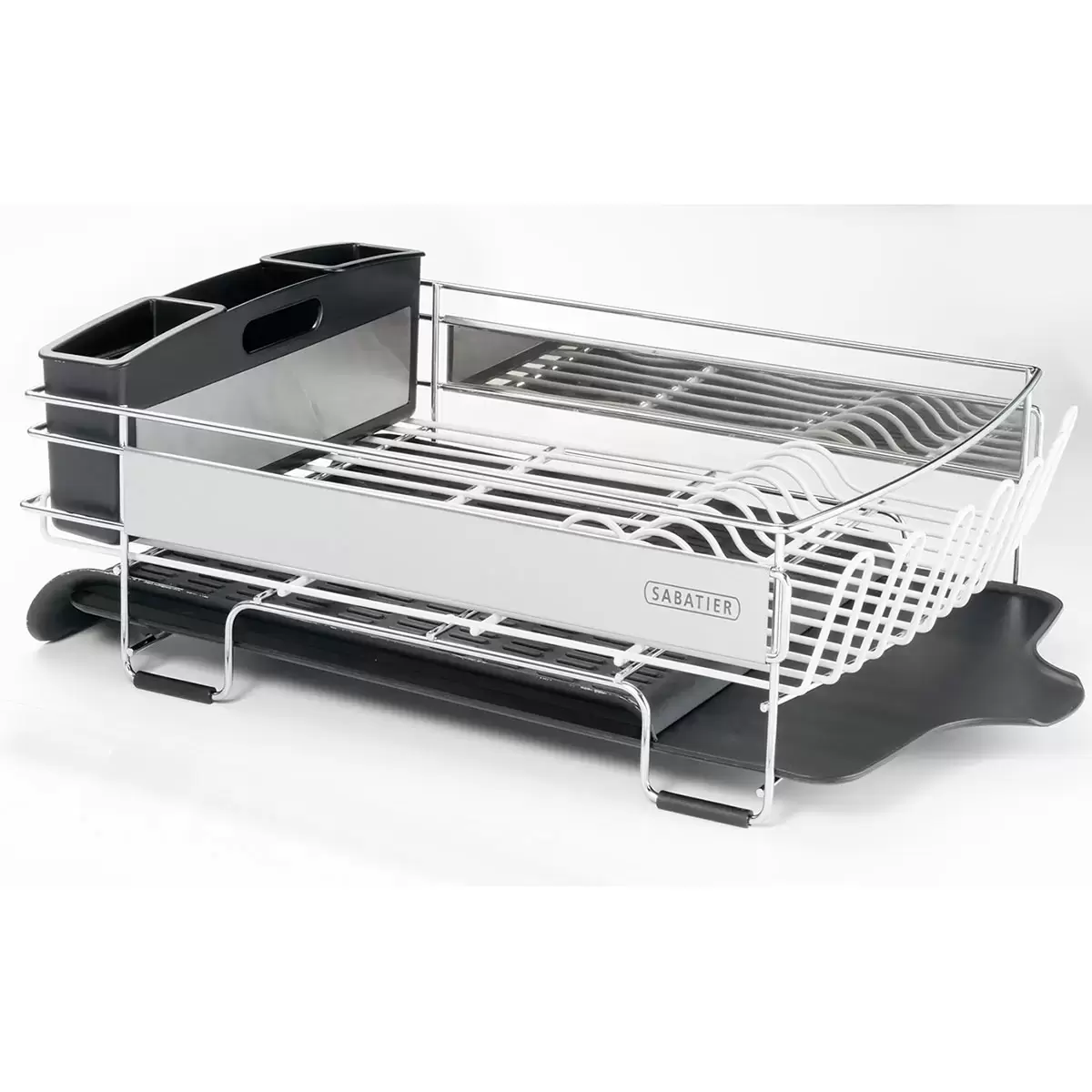 The Sabatier Expandable Dish Rack with Stemware Rack has a large enough capacity to accommodate a wide variety of items including pots, pans, dinnerware, and more. To maximise space, simply pull out the expandable drainboard when a larger draining area is needed. The rack also features vinyl-coated wires for rust-resistance, 3-compartment flatware caddy, removable stemware rack, and an extra-large frying pan slot.