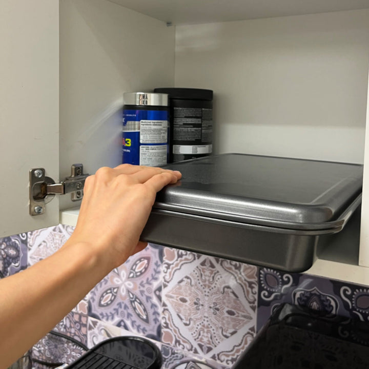 Do you have a stack of bakeware in your kitchen cabinet, taking up space and making it hard to find what you need? Wouldn’t it be great if they could fit together perfectly like puzzle pieces? Now there is! Our stackable set of 5 features carbon steel construction with premium non-stick coating for easy release and easy cleaning. Portable and takes up minimal space.
